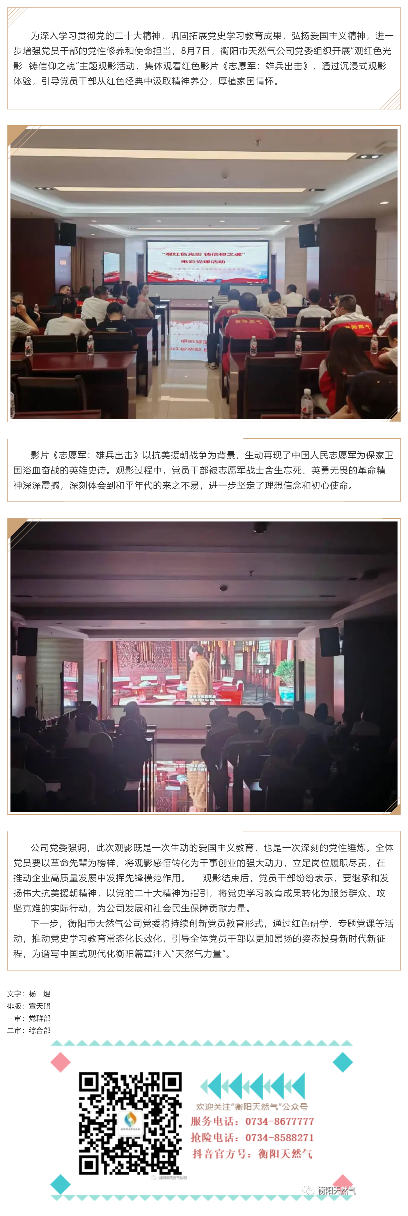衡陽市天然氣公司黨委組織觀看紅色電影《志愿軍:雄兵出擊》 以光影鑄魂激發(fā)奮進力量